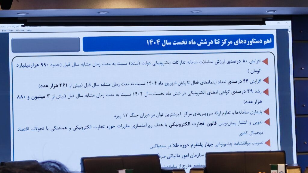 در رویداد روز ملی تجارت الکترونیکی و اقتصاد دیجیتالی ۱۴۰۴، دکتر توفیقی، سرپرست مرکز توسعه تجارت الکترونیکی (تتا)، به تشریح عملکرد و دستاوردهای این مرکز در سال گذشته و نیمه نخست سال جاری پرداخت.